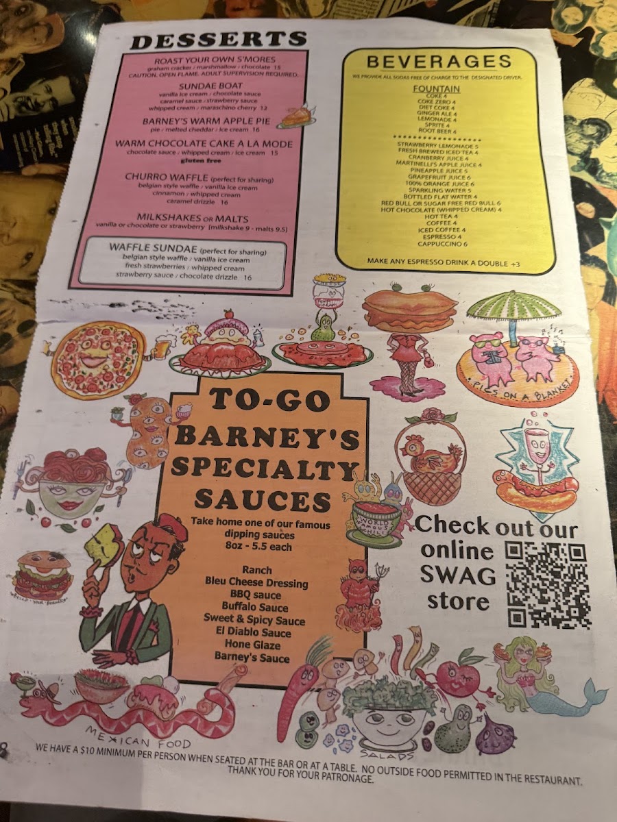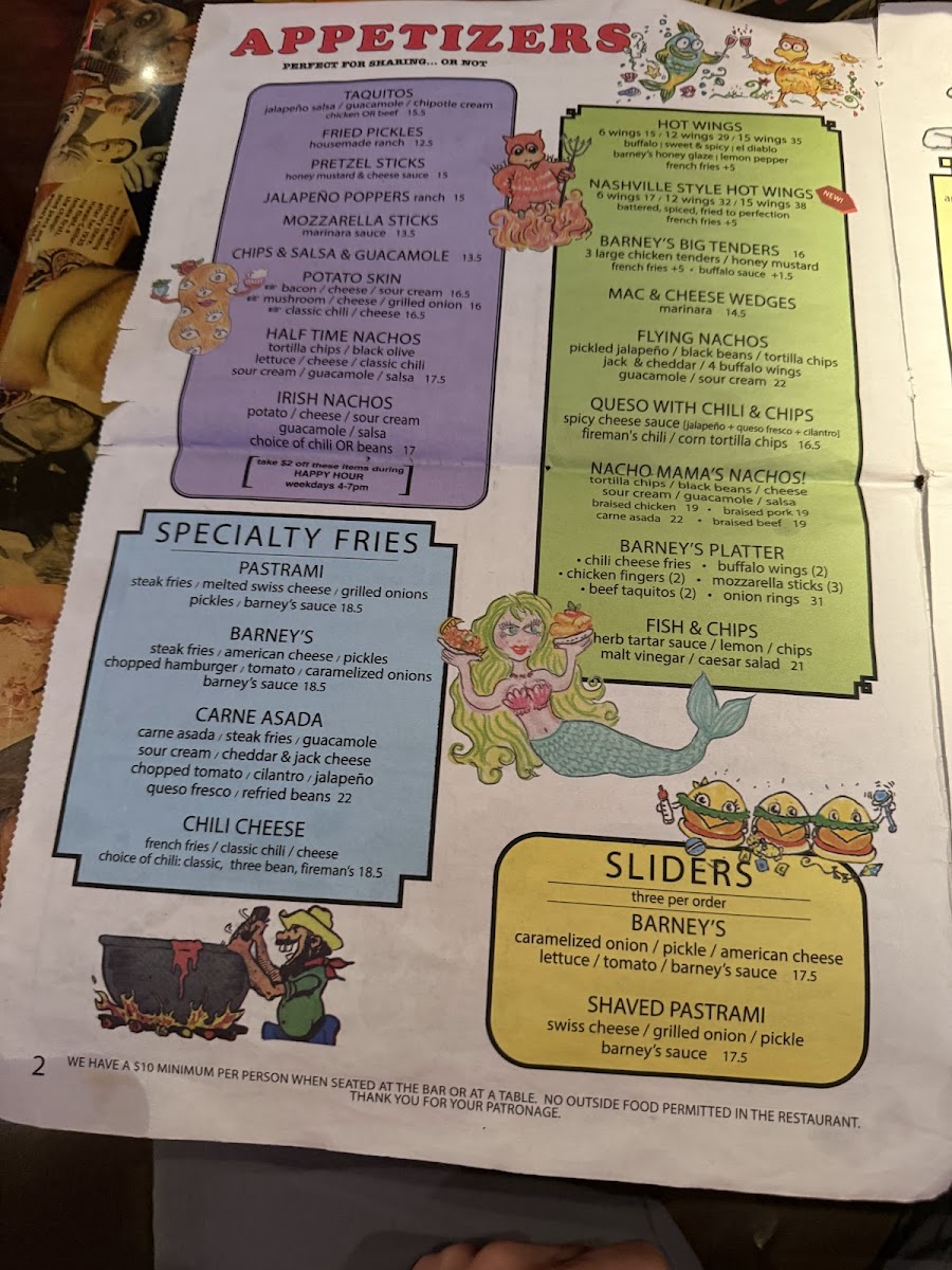 Steak fries, melted swiss cheese, grilled onions, pickles, and barney's sauce