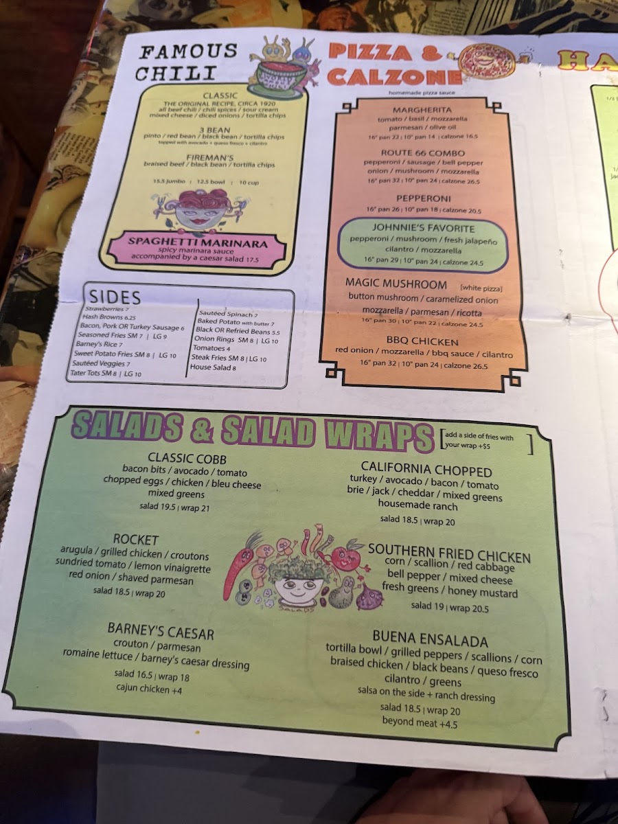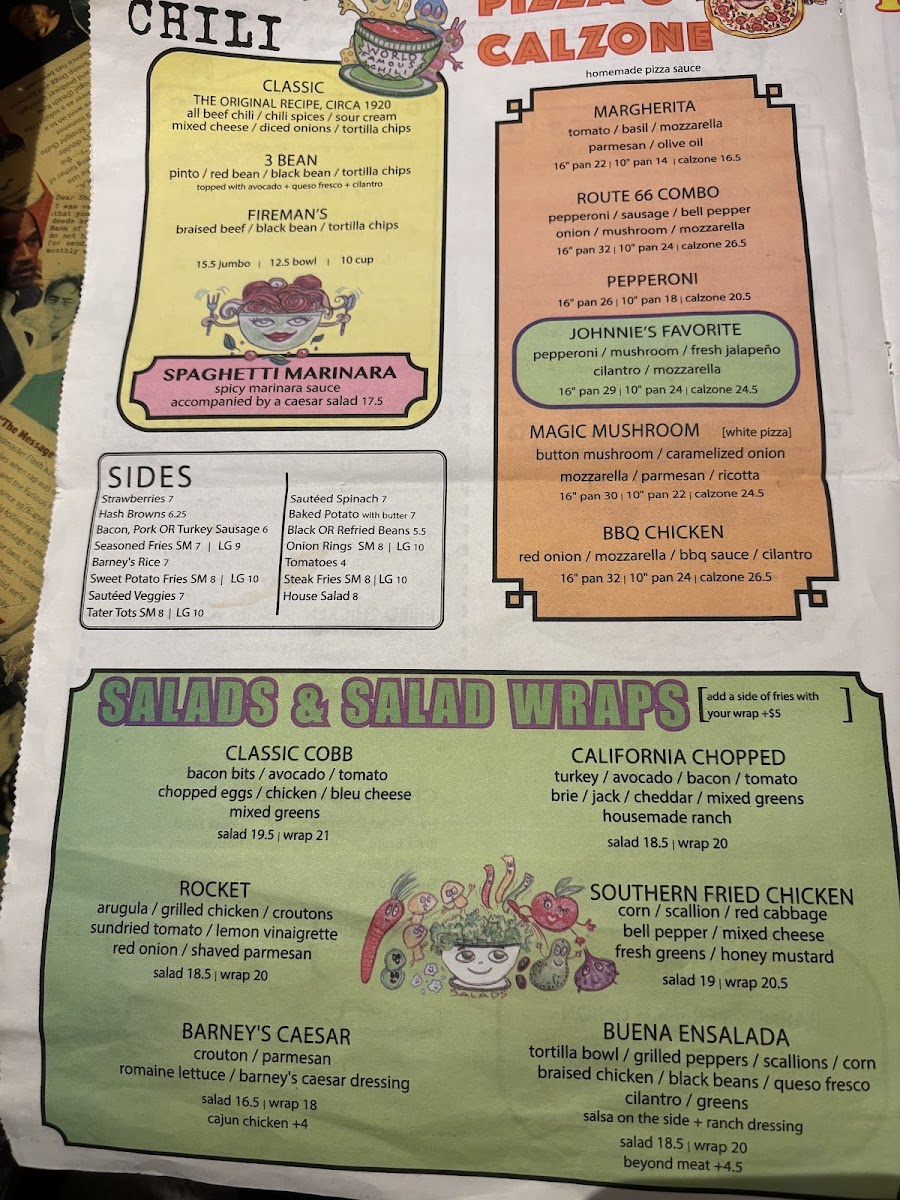 Two 1/3 lbs all beef patties, BBQ sauce, onion straw, applewood smoked bacon, American, tomato, lettuce, and barney's sauce